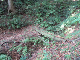 写真では分かり難いが道がジグザグに下っている。分岐で無いとしたら下に水場でもあるのか。 |
