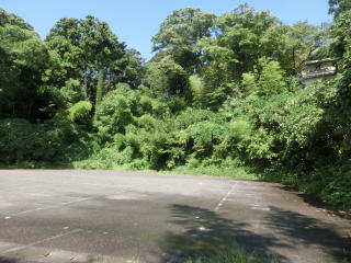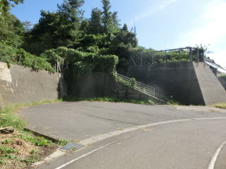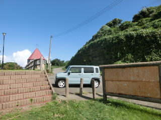 古いガイドブックにあった広場がここのようだ。ここに車を停めても良かった。脇に階段があるが草びっしりで上れない。すぐ隣りが観音堂の入口だったが気付かなかった。 |