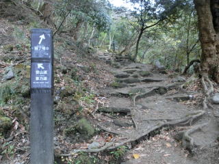 風が強く寒い。見晴らしも良くない。写真を撮って風除け出来る場所へ戻る。途中で女性数人のグループが上って来る。 |